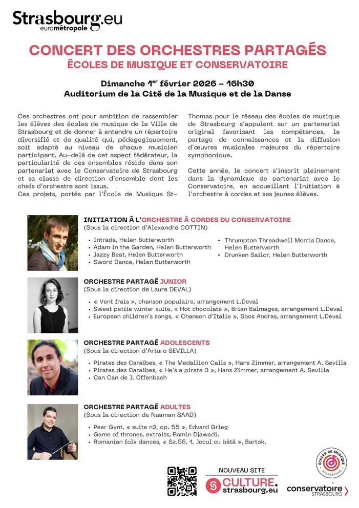 Dimanche 01/02/26, 16h30 – Auditorium de la Cité de la Musique et de la Danse : Concert des Orchestres Partagés