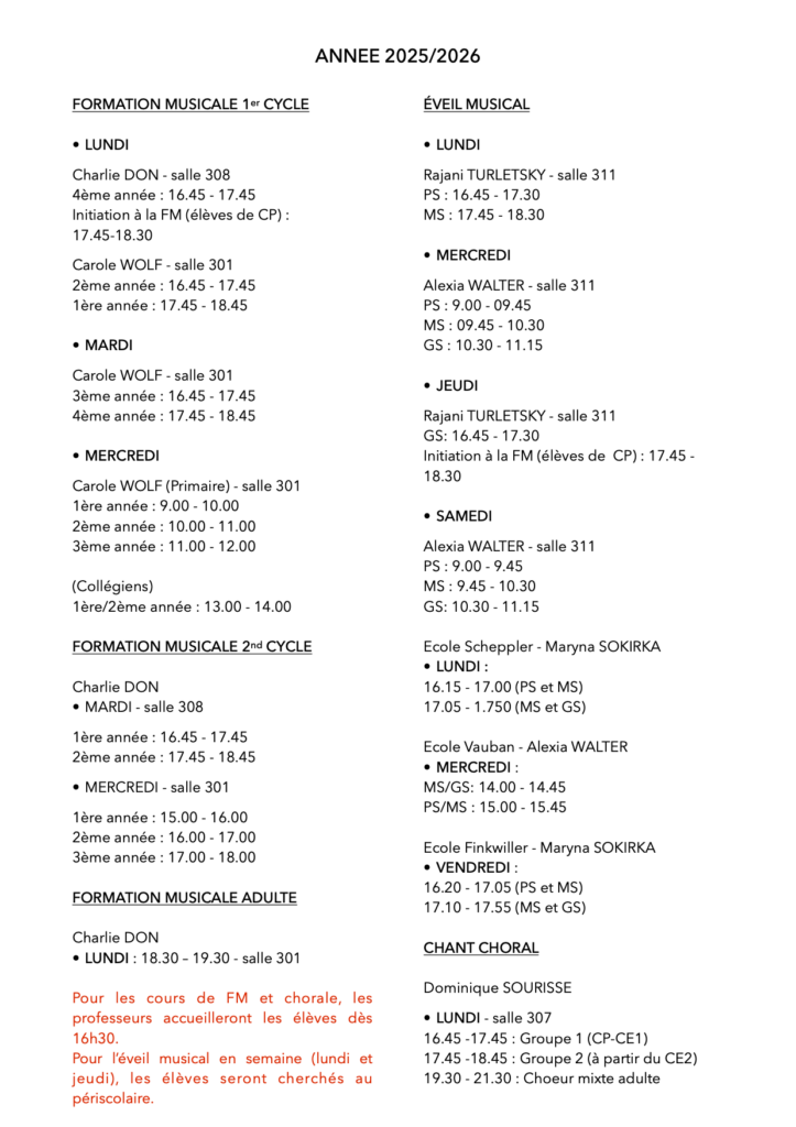 Des cours de formation musicale pour les adultes sont aussi dispensés.